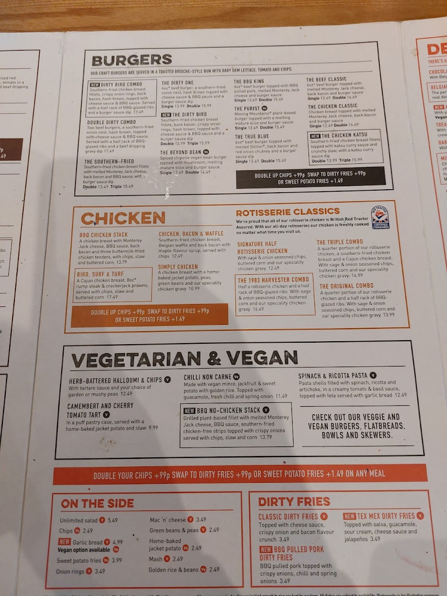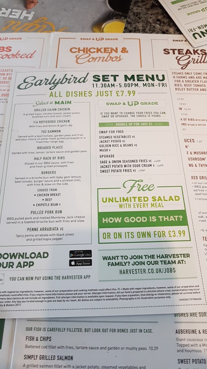 The menu at Harvester Pavillions West Peterborough is a delightful mix of classic British dishes with something for everyone. From hearty breakfasts to wholesome lunch and dinner options, there is no shortage of variety. One of the highlights is the famous salad bar, which allows diners to enjoy a wide range of fresh ingredients, creating a customizable, healthy start to any meal. For those craving comfort food, the menu includes indulgent mains such as succulent steaks, flavorful burgers, and tasty fish and chips, all of which are prepared to perfection.